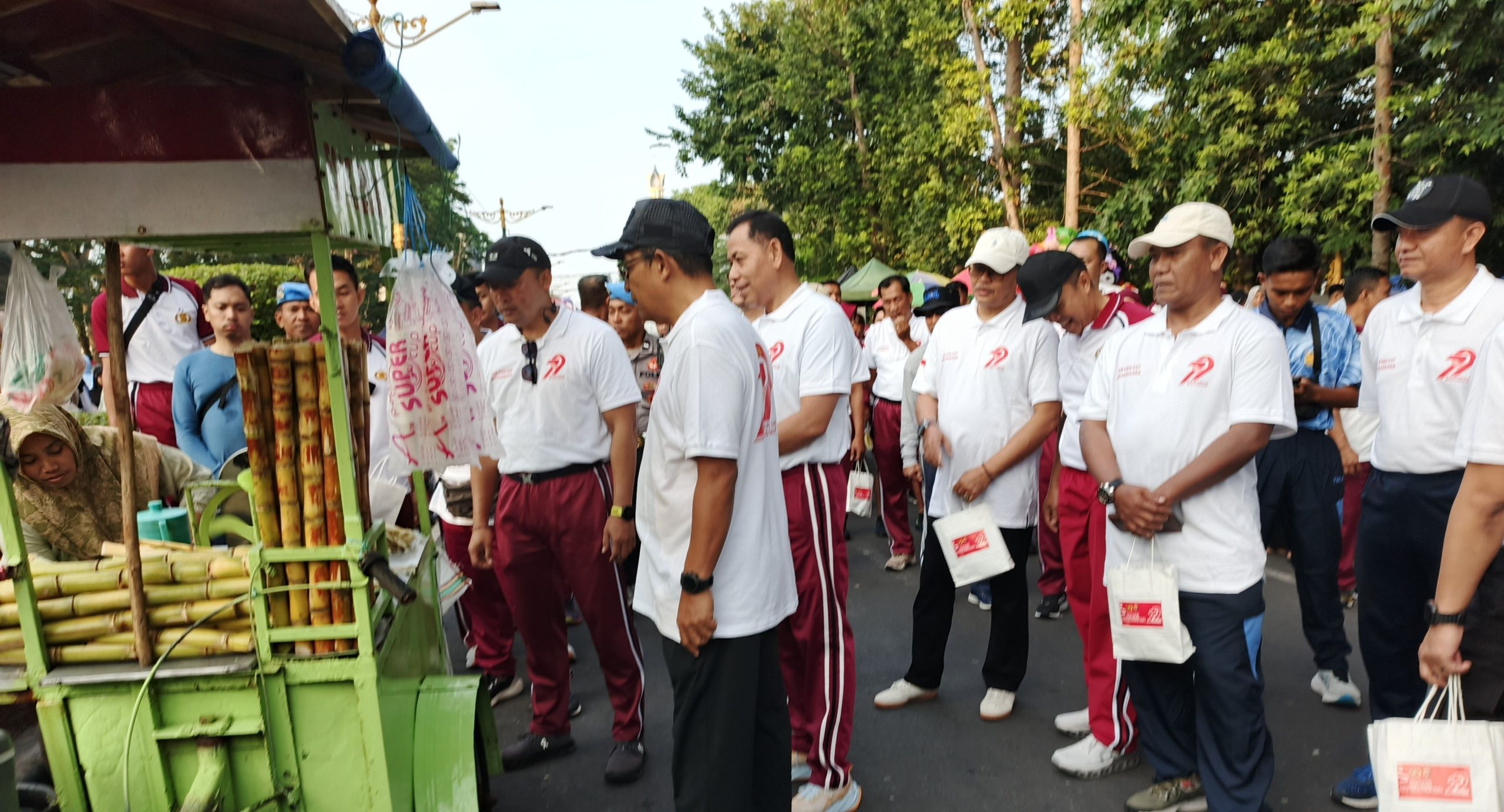 INEWS Gerung– Polda Nusa Tenggara Barat (NTB) menyambut Hari Bhayangkara ke-79 dengan cara istimewa. Kapolda NTB Irjen Pol. Hadi Gunawan turun langsung menyapa masyarakat di kawasan Car Free Day (CFD) Jalan Udayana, Kota Mataram, pada Minggu pagi (22/6). Didampingi Wakapolda Brigjen Pol Hari Nugroho serta para pejabat utama Polda NTB, Kapolda membagikan ratusan suvenir kepada warga.